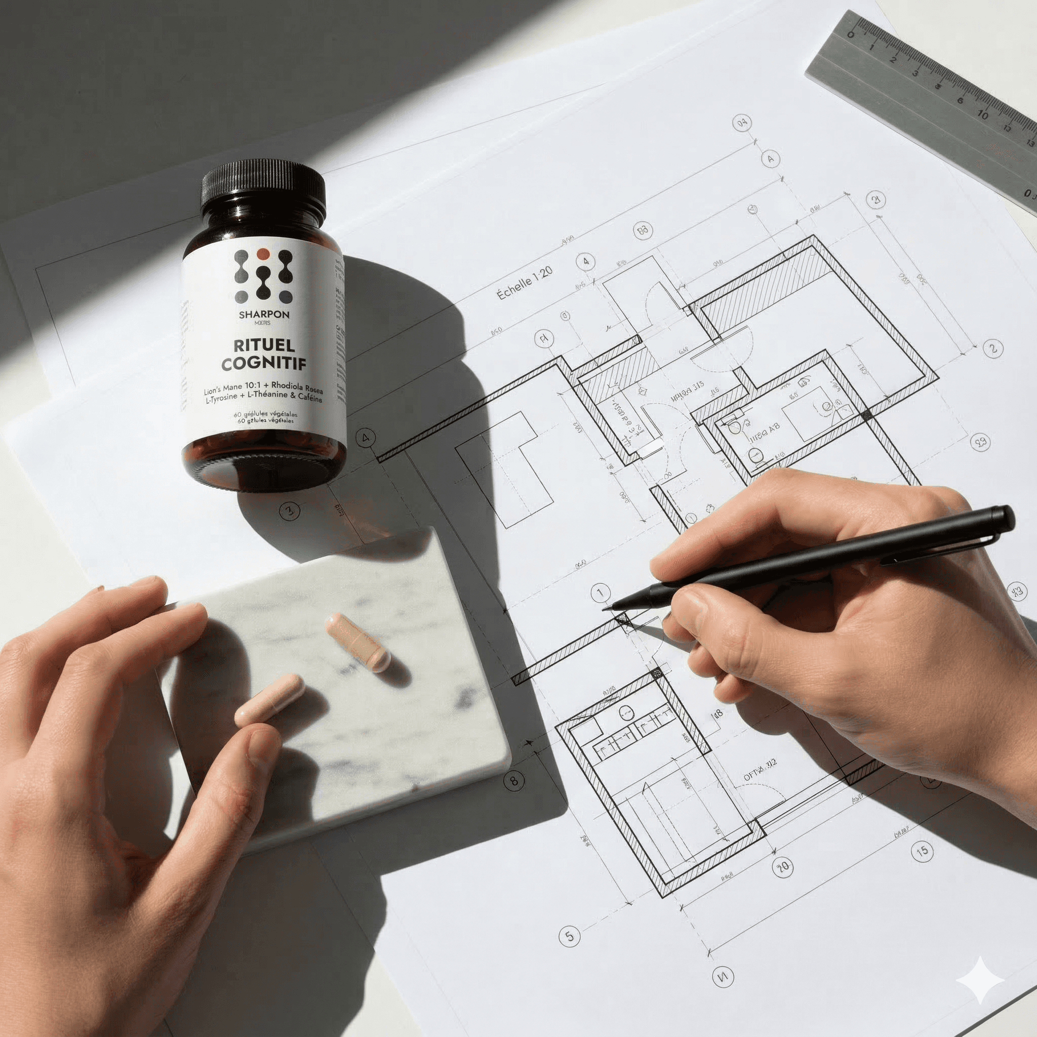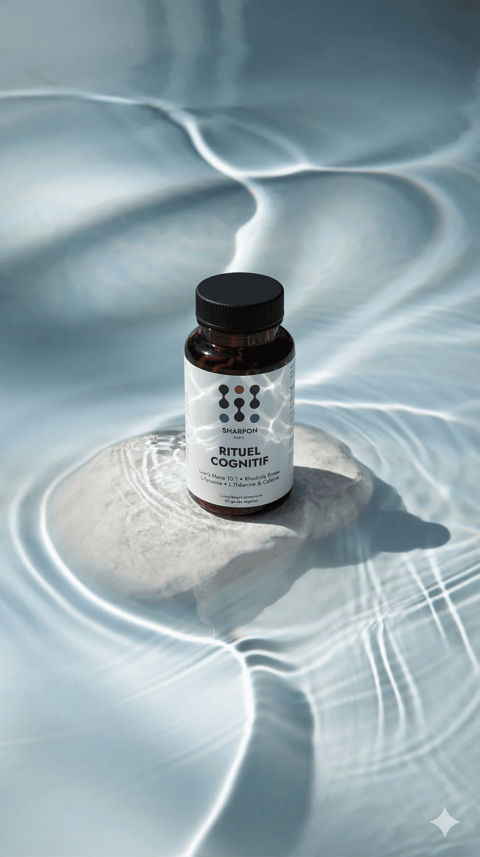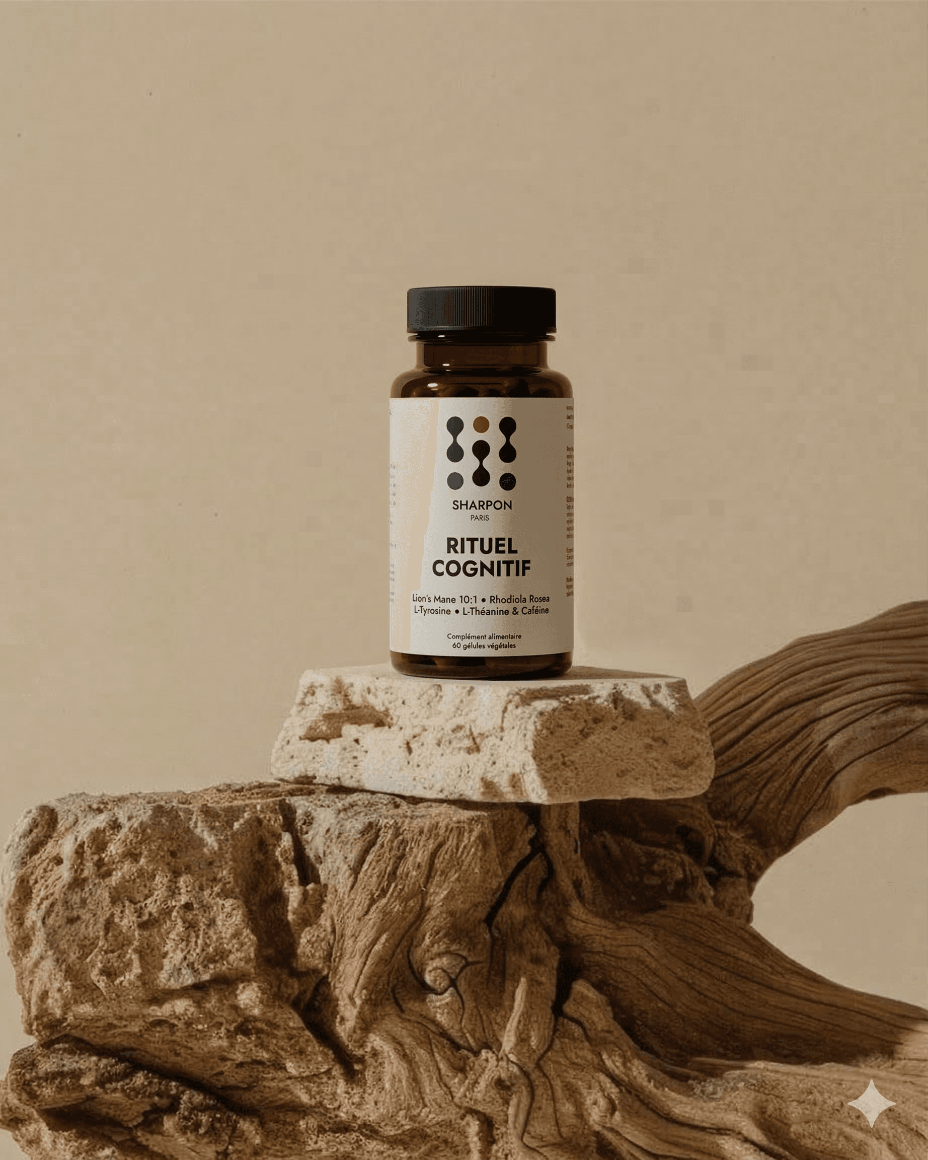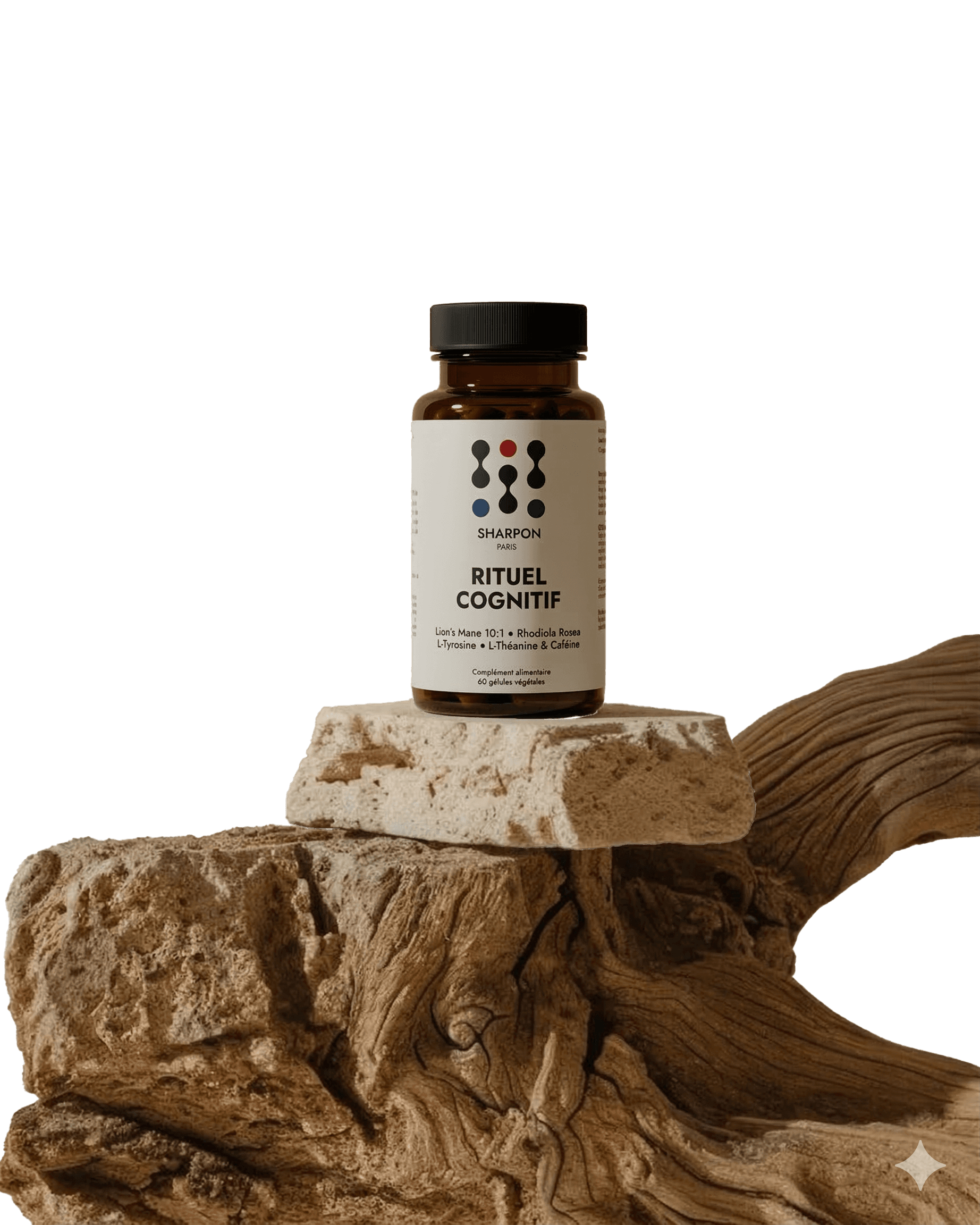 La science a progressé, vos rituels aussi. SHARPON est la première formule pensée pour accompagner les cerveaux soumis à une pression importante. Une synergie de 7 actifs dosés selon la recherche : Lion's Mane concentré 10:1, L-Tyrosine précurseur de dopamine, ratio Théanine:Caféine 2:1, Rhodiola titrée, Zinc et Vitamines B.